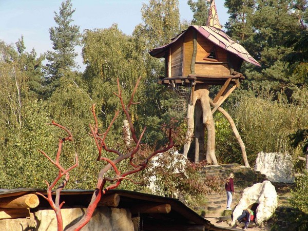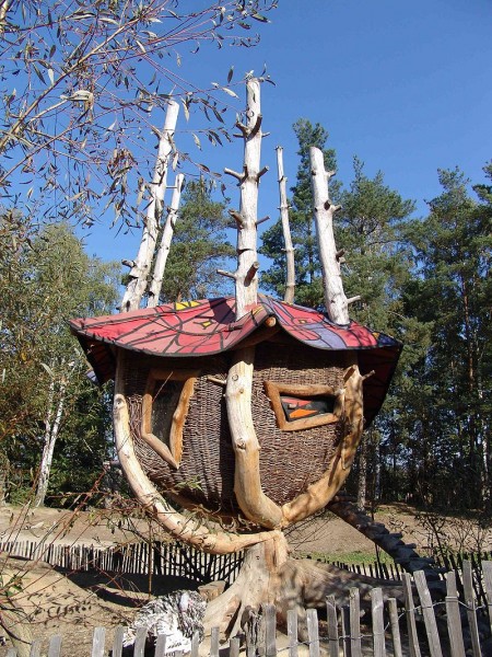 このレジャーランドは1990年に、こういった遊び場を実際に作ったり体験したりできる展示場としてオープンしました。当然すぐ大人気になって、今では年間10万人が来場します。今回紹介しているホテルは、2005年に建てられました。ドイツで初めての“Baumhaushotel“(ツリーハウスホテル)だそうです。