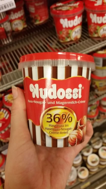 世界ではNutella(ヌテラ)というチョコクリームが有名ですが、東ドイツでは他のチョコクリームが人気Number 1でした。それはドレスデンで生まれた、こちらの“Nudossi“というチョコクリームです。ナッツがたっぷり入っているんですよ~。