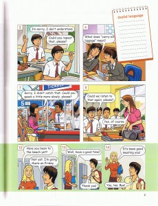 旅先や、ホームステイ先の家族との会話。道を尋ねれうなど中学生、中高生が留学した場面を想定した留学、旅行先で役立つ英語レッスンを展開します。全15Unit。見開き1ページで1Unitという見やすい構成の教材を使用。